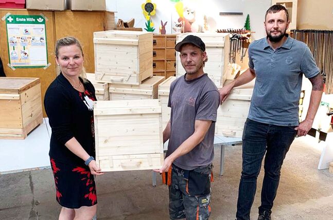 Wichtig war letztlich auch, den Bau der sogenannten Beuten, der Bienenkästen, in regionalen Händen zu belassen. So halfen Menschen mit Interesse für eine berufliche Neuorientierung von der EEPL mit und gaben den Honigbienen ein geeignetes Zuhause. „Diese werden im satten Gelb auch auf dem Gelände der Kjellberg-Villa in der Finsterwalder Innenstadt aufgestellt“, sagt Fritsche, der nicht zum ersten Mal als Vorstandsvorsitzender der Kjellberg-Stiftung sein Herz für Tiere zeigt.