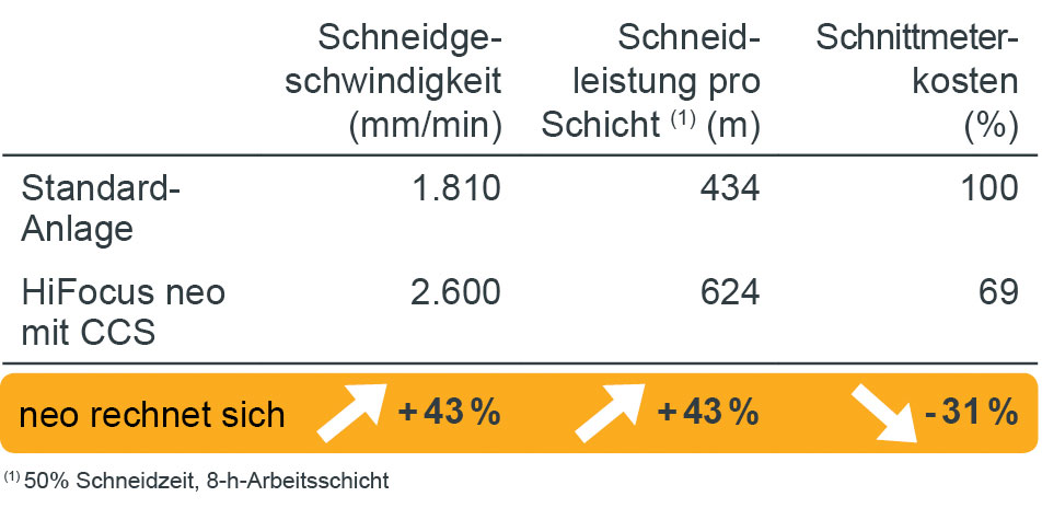 Mit HiFocus neo wird das Plasmaschneiden noch effizienter. Anwender profitieren von hoher Schneidgeschwindigkeit und Schnittqualität sowie von einem weiten Schneidbereich von 0,5 bis maximal 160 mm und erreicht erhebliche Einsparungen bei den Prozesskosten durch