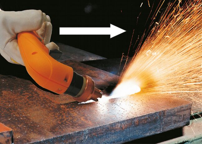 Plasma gouging is a process which involves melting and removing material by using a plasma arc. It can be used for all electrically conductive materials, i.e. mild steel, stainless steel, aluminium, high-melting materials or composites.